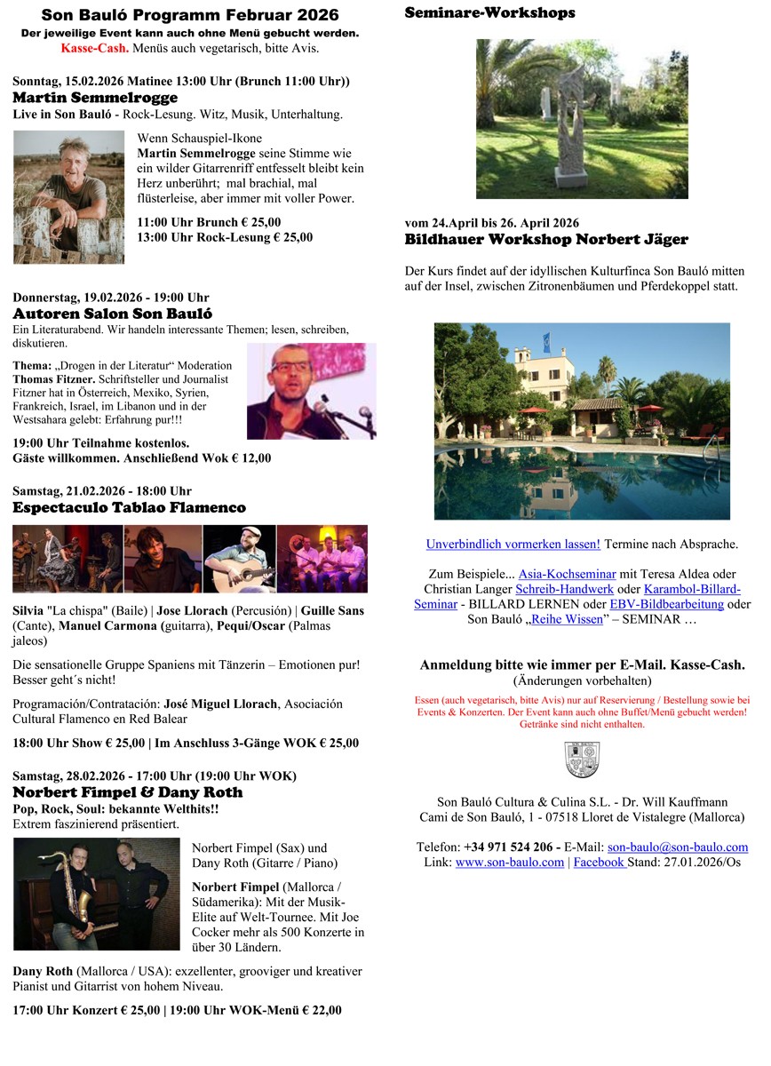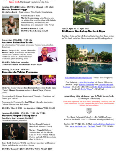 Son Baulo-Jahresrückblick Son Baulo-Jahresrückblick Kulturfinca Son Bauló, Cami de Son Bauló, 1 – Lloret de Vistalegre (Mallorca) Jahresrückblick 2026 Events Son Baulo 01 Events Son Baulo 02 Events Son Baulo 03 Events Son Baulo 04 Jahresrückblick 2025 Events Son Baulo 01 Events Son Baulo 02 Events Son Baulo 03 Events Son Baulo 04 Events Son Baulo 05 Events Son Baulo 06 Events Son Baulo 07 Events Son Baulo 08 Events Son Baulo 09 Events Son Baulo 10 Events Son Baulo 11 Events Son Baulo 12 Jahresrückblick 2024 Events Son Baulo 01 Events Son Baulo 02 Events Son Baulo 03 Events Son Baulo 04 Events Son Baulo 05 Events Son Baulo 06 Events Son Baulo 07 Events Son Baulo 08 Events Son Baulo 09 Events Son Baulo 10 Events Son Baulo 11 Events Son Baulo 12